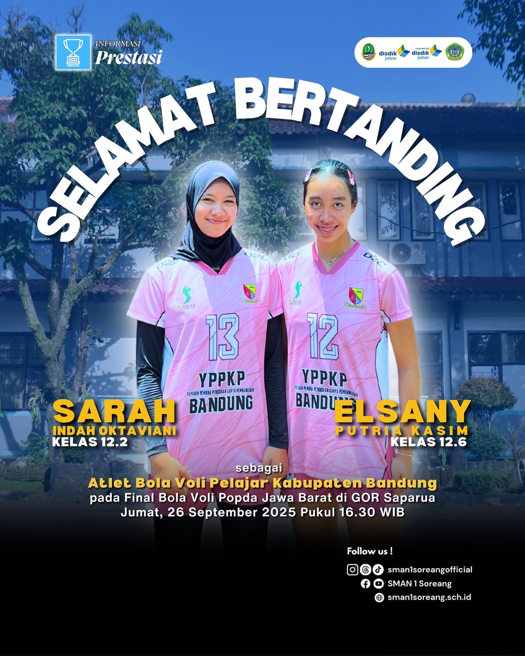 pada Final Bola Voli Popda Jawa Barat di GOR Saparua, hari ini Jumat, 26 September 2025 Pukul 16.30 WIB