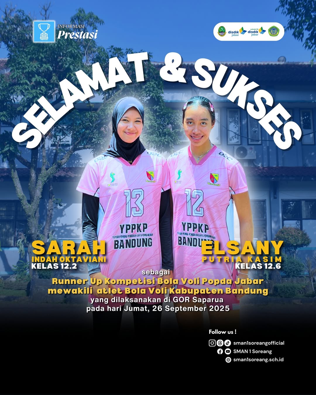 Runner Up Kompetisi Bola Voli Popda Jabar mewakili atlet Bola Voli Kabupaten Bandung yang dilaksanakan di GOR Saparua pada hari Jumat, 26 September 2025